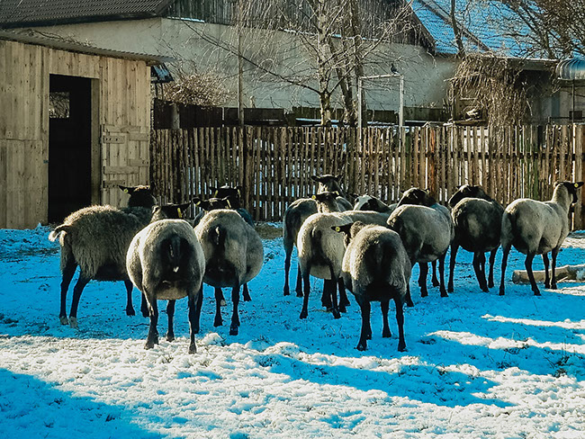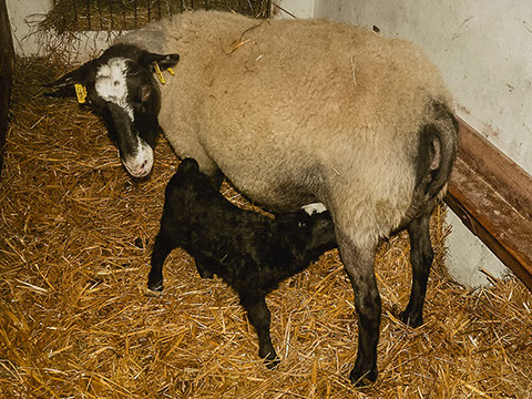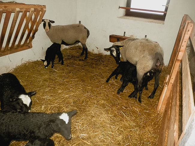 Na bahnění jdou ovečky do stáje,kde má každá s jehňaty  svůj prostor.