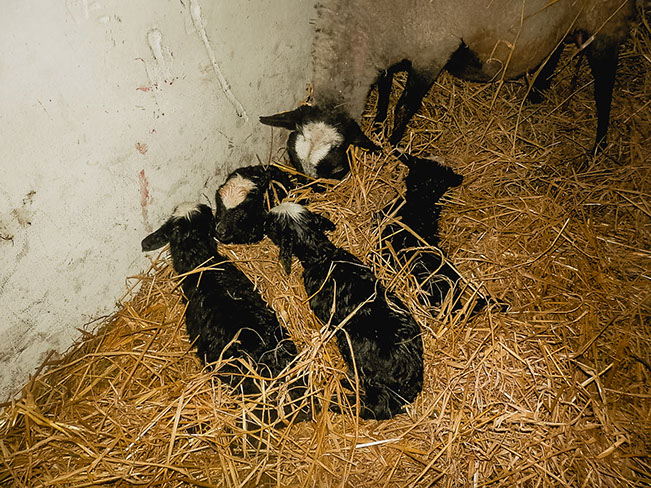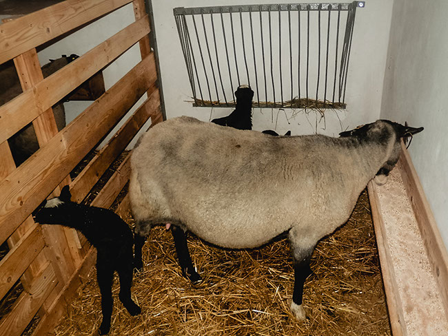 Na bahnění jdou ovečky do stáje,kde má každá s jehňaty  svůj prostor.